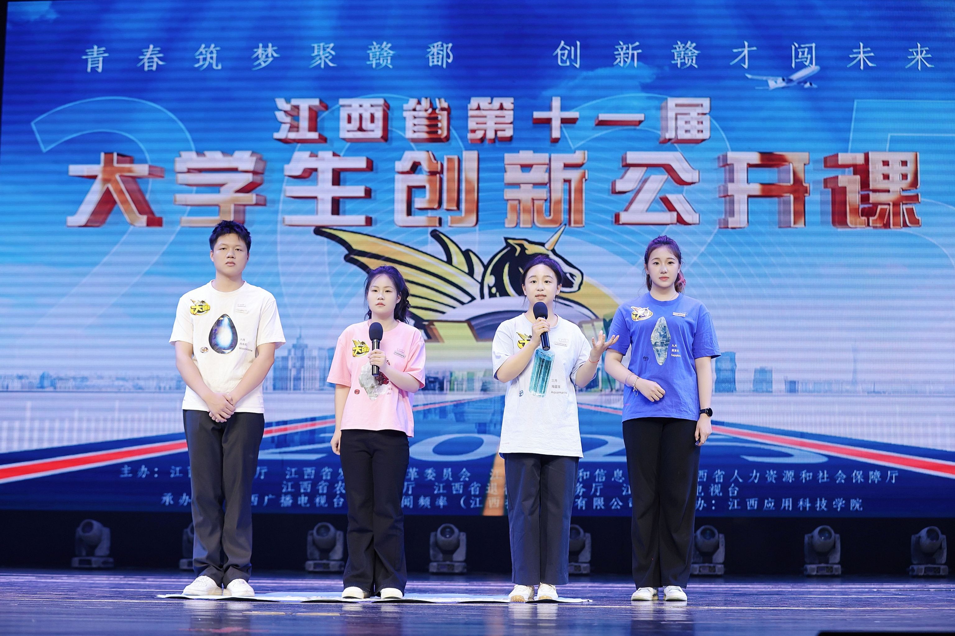 5月13日,由江西省教育厅、江西省发展和改革委员会、江西省工业和信息化厅、江西省人力资源和社会保障厅、江西省农业农村厅、江西省退役军人事务厅和江西广播电视台联合主办的江西省第十一届大学生创新公开课江西应用科技学院专场在音乐厅举行。党委委员、常务副校长干甜,江西广播电视台广播新闻中心副主任曾先林、中国火炬创业导师、中孵创业投资有限公司创始合伙人张春欣出席活动。宜春学院、江西现代职业技术学院等兄弟院校创新创业师生现场观摩。该校创新创业学院工作人员、各参赛项目团队成员及指导老师及900余名对创新创业感兴趣的在校大学生参加活动。