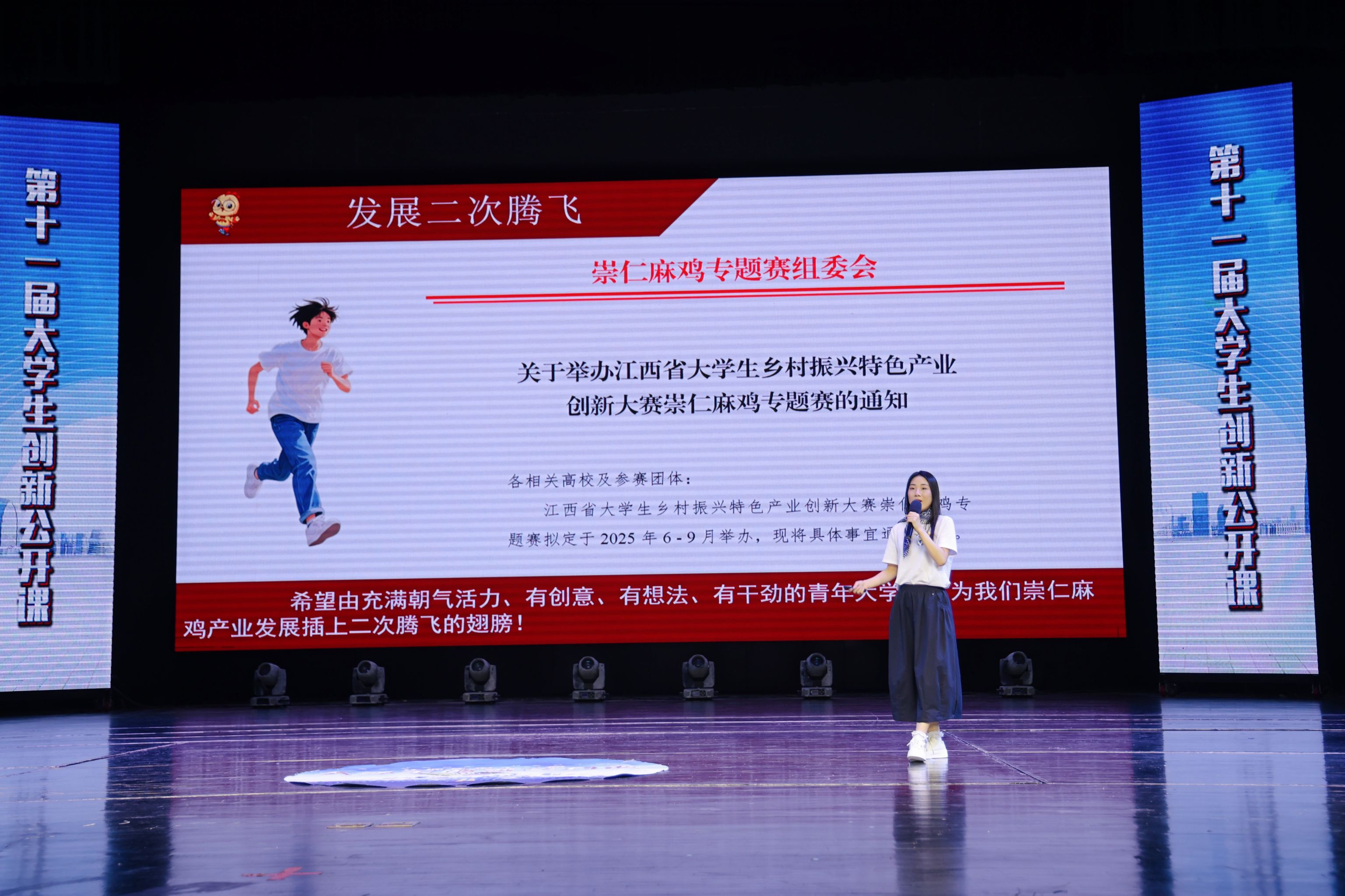 江西省大学生乡村振兴特色产业创新大赛崇仁麻鸡专题赛也在现场进行了推介。赛事聚焦品牌塑造、渠道拓展和产业协同三大方向,引导高校学子依托专业特长,深挖地方资源潜力,以创新思维赋能特色产业,助力崇仁麻鸡产业实现全链条高质量发展。