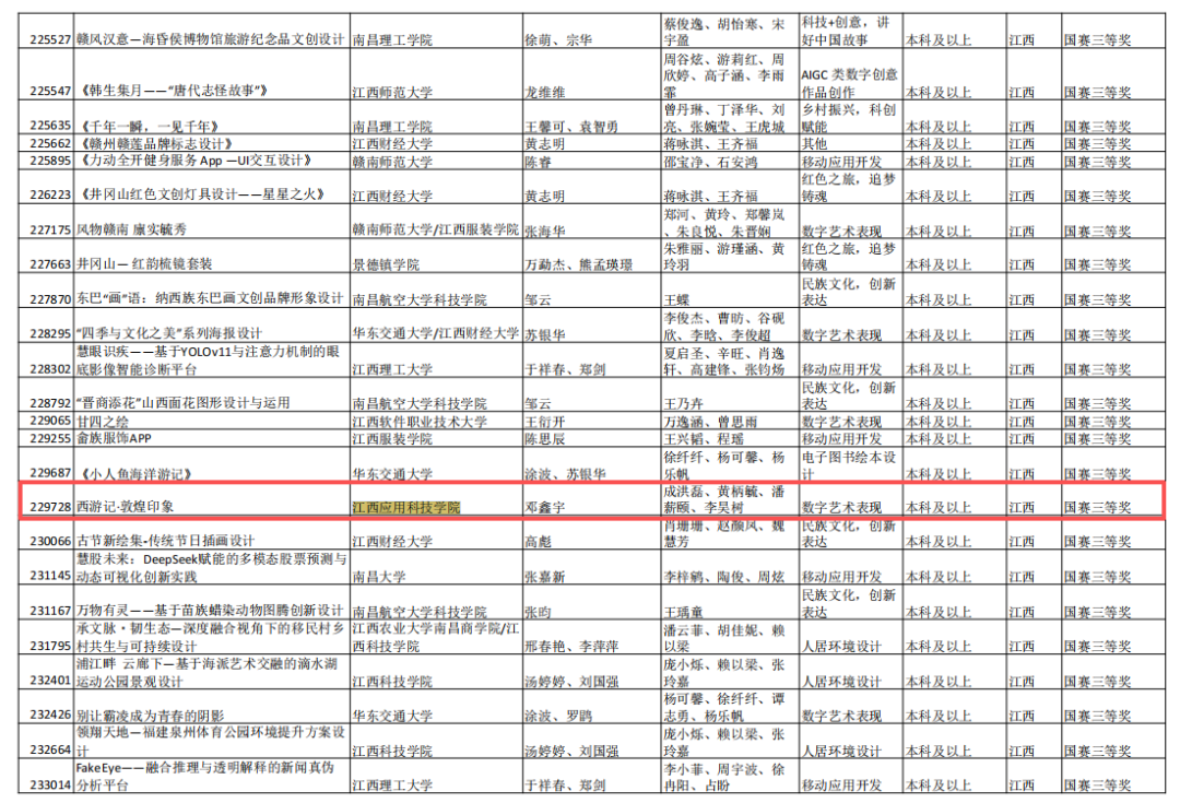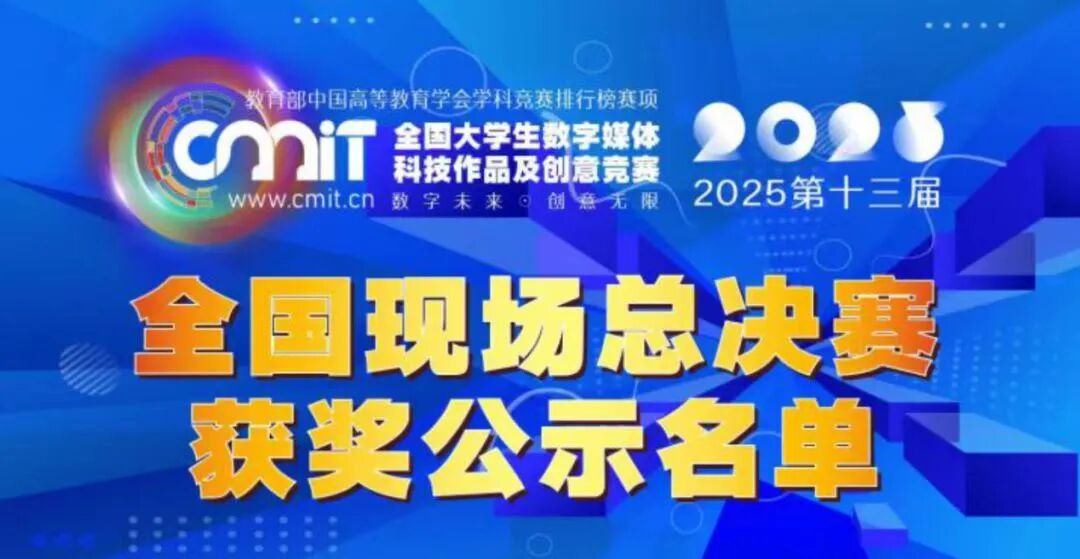 近日,2025年(第十三届)全国大学生数字媒体科技作品及创意竞赛全国线下总决赛圆满落幕。本届赛事规模庞大,共吸引全国1700余所高校、50万名学生参与,最终1900余支队伍晋级全国总决赛。我校共斩获全国总决赛奖项18项,包括二等奖2项、三等奖16项。