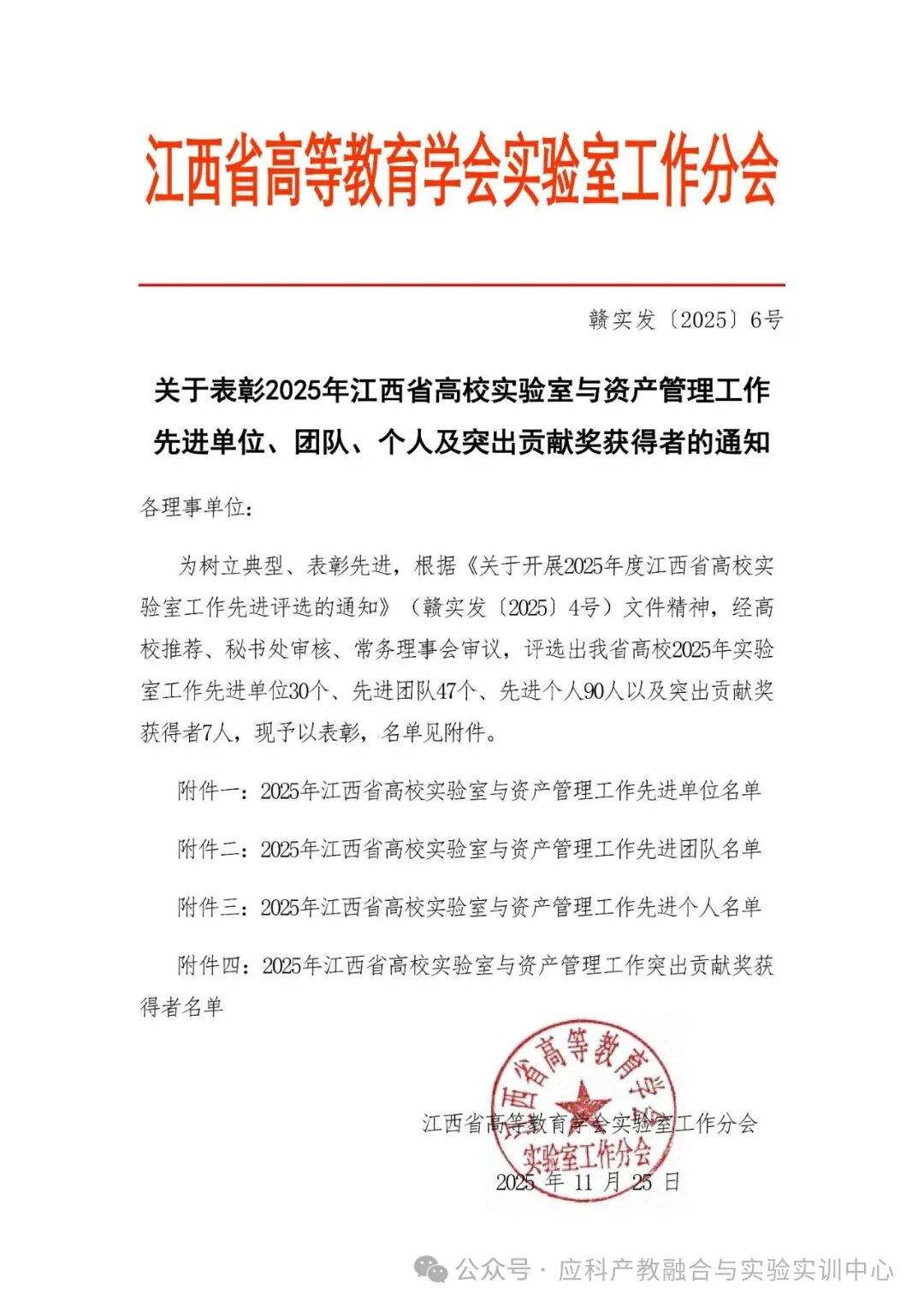 江西省高等教育学会实验室工作分会印发《关于表彰2025年江西省高校实验室与资产管理工作先进单位、团队、个人及突出贡献奖获得者的通知》,我校荣获2025年度“江西省高校实验室与资产管理工作先进单位”,学校信创产业学院信创AI融合创业团队获“江西省高校实验室与资产管理工作先进团队”,智造学院教师王善增获“江西省高校实验室与资产管理工作先进个人”荣誉称号。