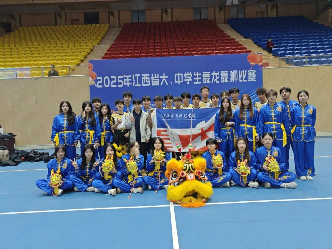 由江西省教育厅主办,江西省学生体育协会,上犹县教育体育局承办的2025年江西省大、中学生舞龙舞狮比赛在上犹县文体中心落下帷幕。我校荣获彩带龙自选 7 人(本科甲组)第二名、彩带龙3人组(本科乙组)第二名;竞速舞龙(本科甲组)第三名、南狮传统套路(本科乙组)第三名;彩带龙自选 5 人(专科乙组)第二名、彩带龙自选 3 人(专科乙组)第二名;北狮传统套路(专科乙组)第三名;彩带龙自选5人(专科甲组)第三名;团体总分获本科甲组第三名、本科乙组第四名及专科乙组第四名。