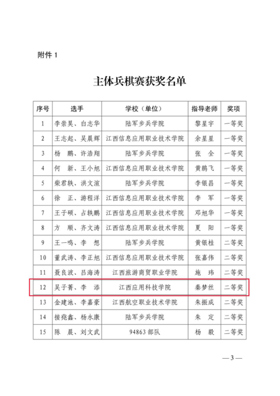 近日,由中共江西省委宣传部、江西省教育厅主办的江西省“八一杯”兵棋推演大赛结果公布。我校学子荣获主体兵棋赛二等奖一项、三等奖三项;优秀战报奖二类一项,三类一项。学校同时获评“优秀组织单位”。