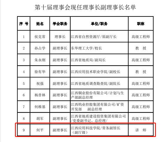 近日,江西省地质学会第十届理事会第四次常务会议召开,大会选举了我校光华宝石与艺术设计学院副院长何平为江西省地质学会副理事长。
