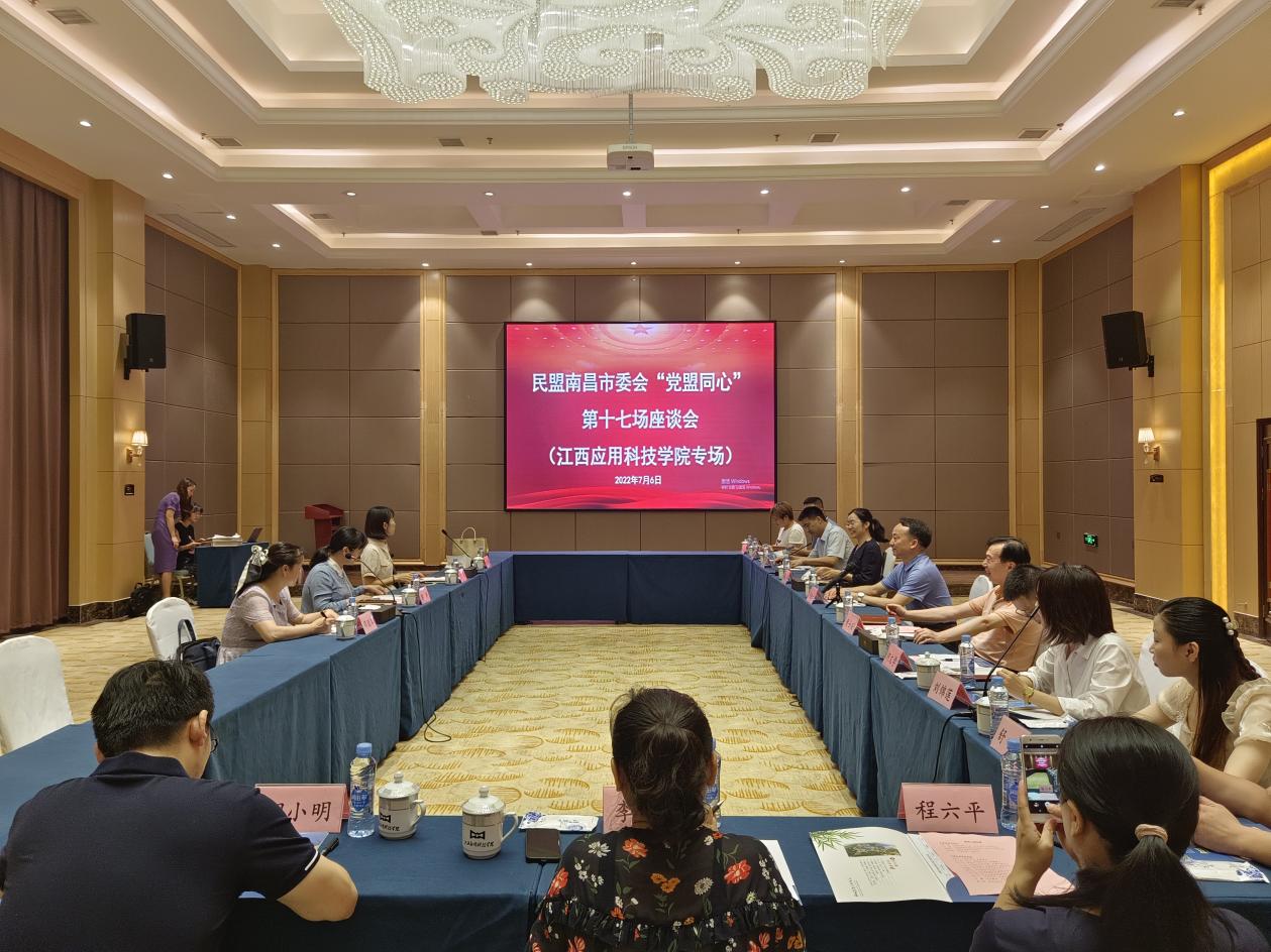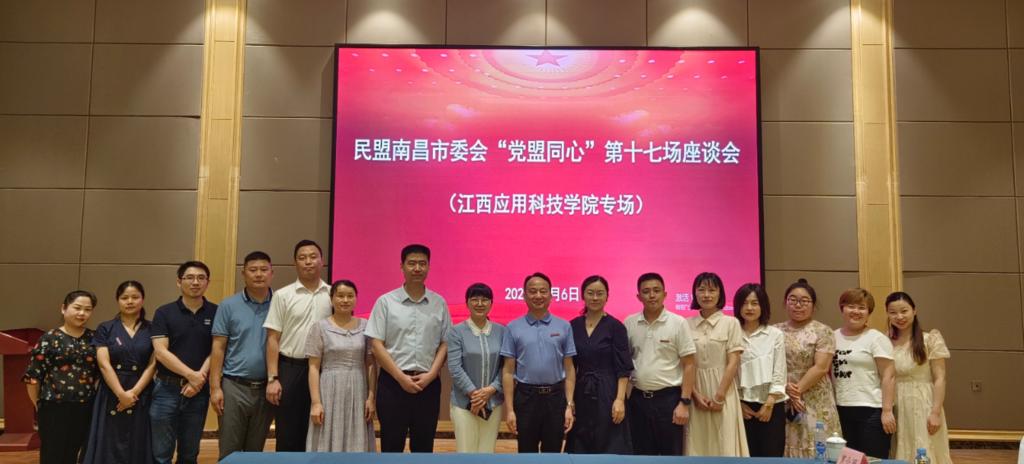 民盟市委组织部部长邓丽华、民盟市委一级科员张明悦与民盟江西应用科技学院支部全体盟员参加座谈。