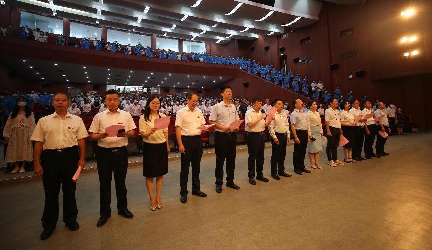 校长黄士安带领全体师生在大会上进行宣誓。全校上下必将发扬攻坚克难精神,以优异的成绩迎接党的二十大胜利召开!