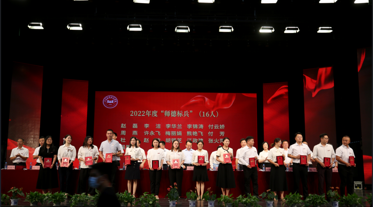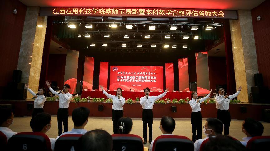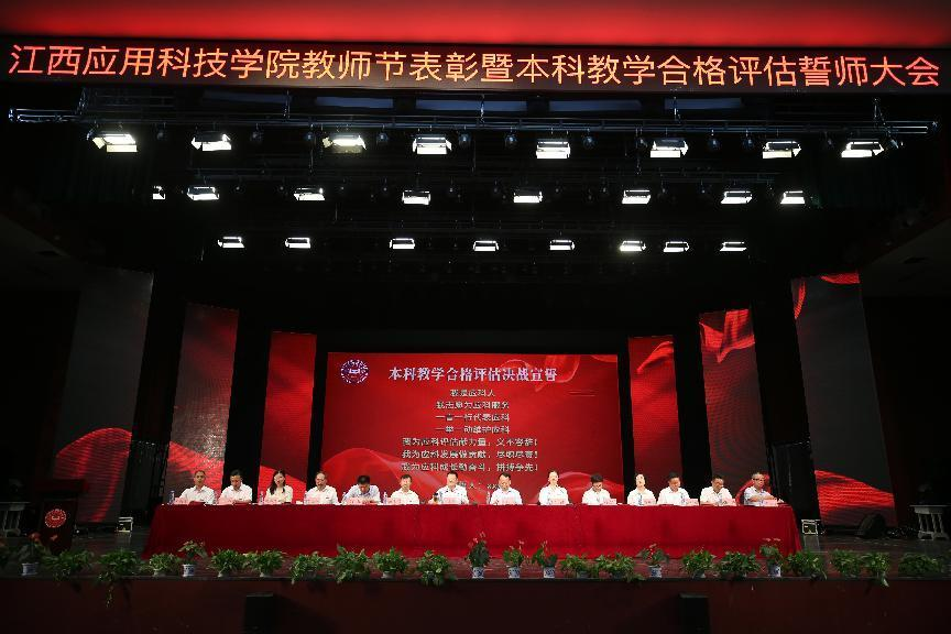 为深入学习贯彻习近平总书记关于教育的重要论述,加强教师队伍建设,大力宣扬和表彰先进典型,激励全校教师担当教书育人使命,营造尊师重教的浓厚氛围,为我校本科教学合格评估工作进一步凝聚力量,9月9日下午,江西应用科技学院在音乐厅隆重召开第38个教师节表彰暨本科教学合格评估誓师大会。学校全体校领导出席大会,学校部分教师及学生代表采取线上线下结合方式参加会议,大会由常务副校长干甜主持。