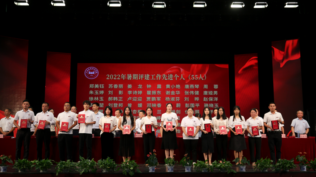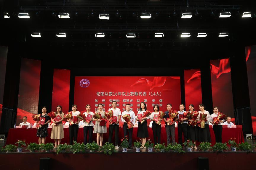 大会表彰了一批为学校事业发展作出贡献的优秀教师和管理干部。学校领导为在应科院从教16年的优秀教师代表,以及荣获2022年度“师德标兵”“学校思想政治工作典型案例获奖教师”“教师教学竞赛获奖教师”“第五届全省本科院校青年教师教学竞赛”“2022年度优秀辅导员”“2022年度优秀共青团干(教师)”“2022年暑期评建工作先进个人”颁奖,为受聘南昌航空大学硕士研究生导师和南昌大学硕士研究生导师的教师颁发聘书。学生上台为在应科院从教16年的优秀教师代表献花。