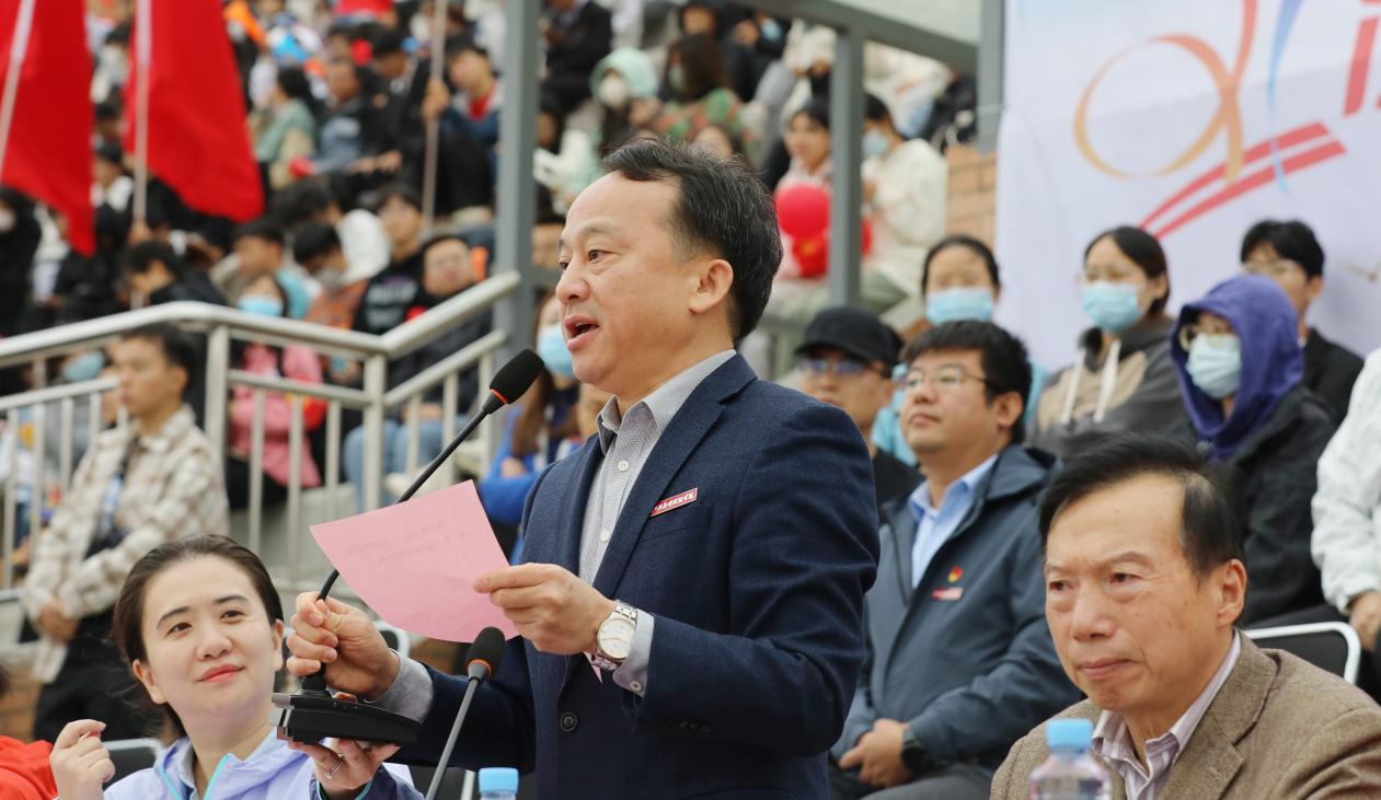 校长黄士安在开幕式致辞中表示,校运动会是广大师生展示风采、促进交流的舞台,是对我校体育工作、师生精神风貌的检阅。我校高度重视体育运动事业、注重体育课程改革,把体育工作摆在更加突出位置,在各级各类比赛中取得了丰硕成果。他指出,运动会是传播体育文化、弘扬体育精神的重要平台,全校各单位应更加重视和支持师生们开展健康体育活动,共同营造浓厚的体育氛围。