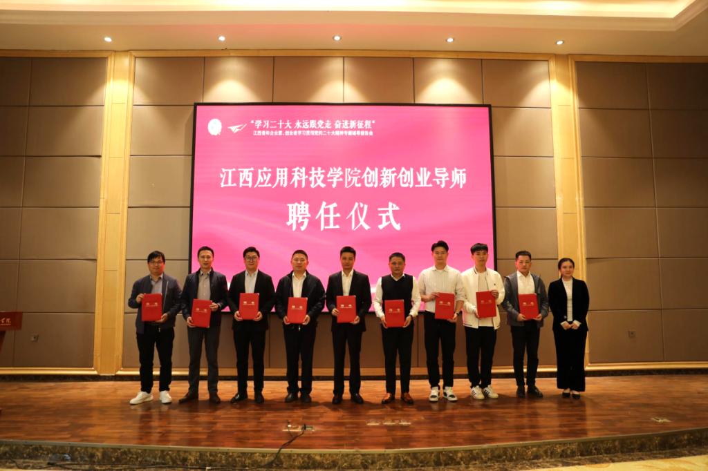 会上还举行了江西省青年创业就业示范基地授牌、江西省青年创业导师团揭牌、江西省青年创业导师以及江西应用科技学院创新创业导师聘任仪式。干甜为江西省青年创业导师、江西应用科技学院创新创业导师颁发聘书。