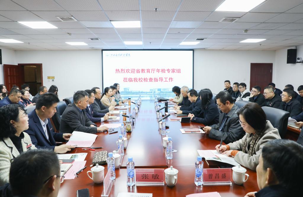 3月22日上午,以江西经济管理干部学院副校长、教授肖鸿晶为组长的省教育厅年检专家组一行7人来到我校,通过听取汇报、查阅资料、座谈交流、实地考察等形式开展年检工作,学校在六楼会议室召开座谈会。学校董事长、党委副书记黄玉林,党委书记、政府督导专员彭迪云,校长江作军,常务副校长干甜,党委副书记江星,副校长刘光华、胥懋云、房小珍、王立、张敏出席座谈会。各职能部门负责人,各二级学院院长,审计机构代表,师生代表参加座谈会,会议由肖鸿晶主持。