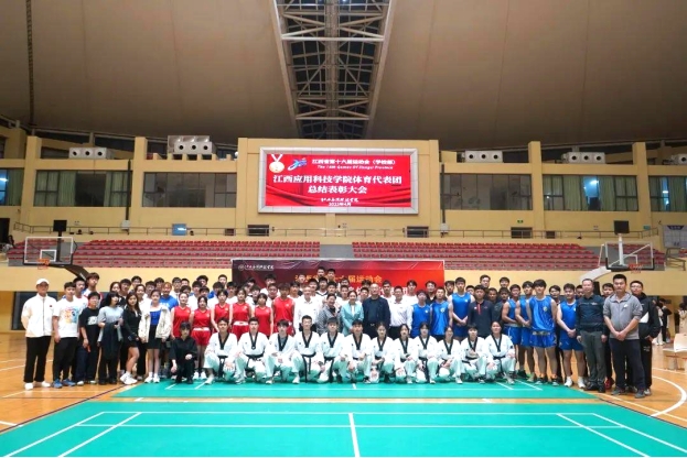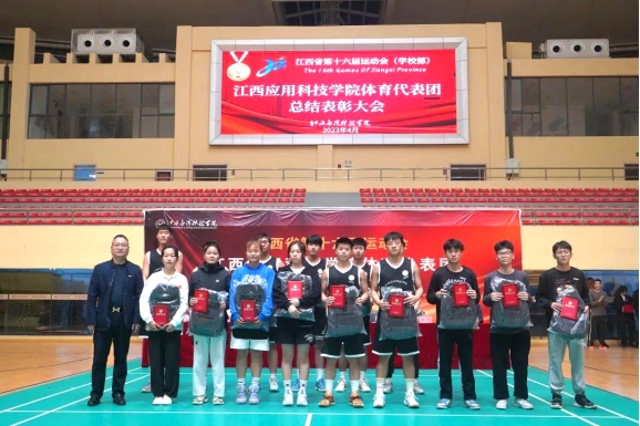 为总结经验,表彰先进典型,凝聚奋进力量,4月13日,学校在体育综合训练馆召开“江西省第十六届运动会江西应用科技学院体育代表团总结表彰大会”。学校常务副校长干甜,党委副书记江星出席,学工处处长、校长助理黎晓明,校团委书记张荆,体育学院院长李梁华,体育学院党总支书记、副院长赵新胜,体育学院副院长沈友华参加表彰大会,大会由赵新胜主持。