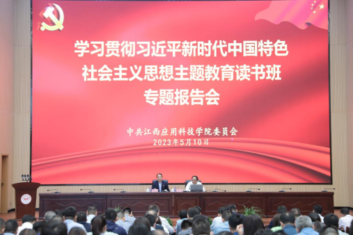5月10日下午,学校在三元大厦二楼学术报告厅召开学习贯彻习近平新时代中国特色社会主义思想主题教育读书班专题报告会。全国优秀教师、南昌大学教授刘涛受邀作“学习《中国共产党章程(修正案)》”专题辅导。全体在家校领导、副处级以上干部、全体专(兼)职党务干部、学校主题教育办公室工作人员参加,彭迪云主持会议并作总结讲话。