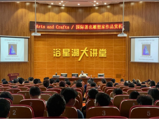 2日上午,丹尼尔·克劳斯教授在校浴星湖大讲堂为学院师生代表作了一场精彩绝伦、趣味横生的演讲。讲座以《Arts and Crafts/国际著名雕塑家作品赏析》为题,通过讲解、比较和探讨数位国际艺术大师的代表作品,向师生们介绍了世界美术与雕塑工艺的发展历史和不同时期作品的典型特征,旨在让师生们在了解美术与雕塑发展的基础上,加深对艺术造型、色彩、装饰等方面的理解,提高自身的艺术修养、鉴赏水平及创作能力等综合素质。丹尼尔·克劳斯教授因在中国工作生活多年,中文流利,幽默诙谐的语言多次使全场响起阵阵掌声,同学们也纷纷提问互动,整场讲座气氛轻松融洽。
