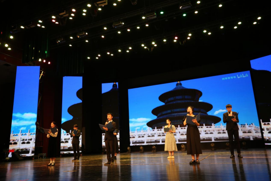 在诗歌朗诵环节,各参赛队员以饱满的激情,真切的感受,专业的表达为现场师生带来一场精神的洗礼、视听的享受。软件与区块链学院分会参赛的节目《旗帜》、机关分会《再一次出发》、财经学院分会《青春中国》,回顾了中国共产党带领中国走上伟大复兴道路的艰难历程,讴歌了新中国伟大建设成就;国际商务学院分会的《向祖国报告》、智能制造工程学院分会的《新时代颂》、光华宝石与艺术设计学院分会的《月光下的中国》、教育学院分会的《读中国》,表达了我校师生不忘革命历史,探寻先辈遗志,争当红色基因继承者的决心;音乐学院分会的《不忘初心》,体育学院分会的《向祖国表白》,人工智能学院分会的《应科青年心向党建功立业新征程》,以青春的名义表达了对祖国的热爱,展现了应科青年一代的蓬勃风采;建筑工程学院分会的《中国,我相信》,现代管理学院分会的《中华颂》,马克思主义学院分会的《矢志不渝跟党走,强国有我新征程》主题鲜明,气势宏伟,赢得现场观众热烈掌声,把整场比赛气氛推向高潮。
