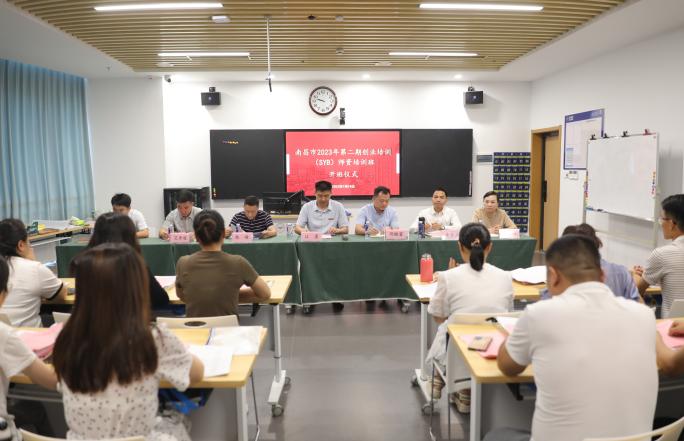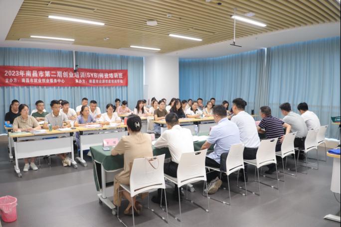 7月14日上午,由南昌市就业创业服务中心主办的2023年度第一期创业培训(SYB)师资培训班开班仪式在我校三元大厦304教室举行。学校党委副书记江星、南昌市就业创业服务中心创业培育科科长陈峰及副科长邵徽富、南昌市众源技能培训学校负责人李文军及副校长方曙、马兰花中国创业培训项目SYB培训师李坚立和艾奇俊老师与30名学员共同参加了此次开班仪式。