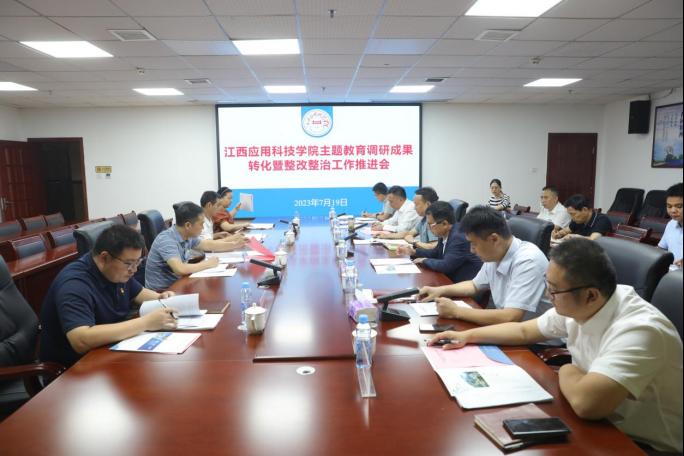 为深入学习贯彻习近平总书记关于主题教育的重要指示精神,运用党的创新理论研究新情况、解决新问题、总结新经验、探索新规律,推动调研成果更好转化为学校加快高质量发展的实际成效,7月19日上午,江西应用科技学院党委召开学习贯彻习近平新时代中国特色社会主义思想主题教育调研成果转化暨整改整治工作推进会。委厅主题教育办实践督导组成员周建伟、杨春平等一行四人到会指导,党委书记彭迪云主持会议并讲话。