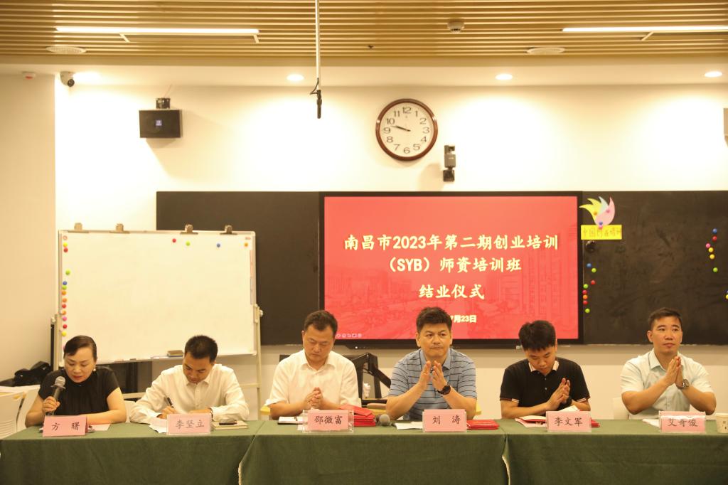 7月23日上午,江西应用科技学院2023年度第一期创业培训(SYB)师资培训班结业仪式在三元大厦304教室举行。南昌市就业创业服务中心副主任刘涛及创业培育科副科长邵徽富,南昌市众源技能培训学校负责人李文军及副校长方曙,马兰花中国创业培训项目SYB培训师李坚立和艾奇俊老师与30名学员共同参加了此次结业仪式。