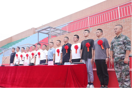 仪式在雄壮嘹亮的国歌声中拉开序幕,入伍在即的130名入伍新兵们个个精神抖擞、神采奕奕。