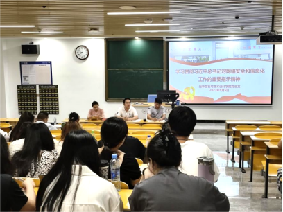 加强领导,层层落实。为深入贯彻习近平总书记关于网络强国的重要思想,严格落实学校网络安全工作责任制,切实维护网络意识形态安全,我校在浴星湖大讲堂召开网络安全和新媒体建设专题会议。各二级学院也召开专题学习会,进行多轮网络安全隐患排查。