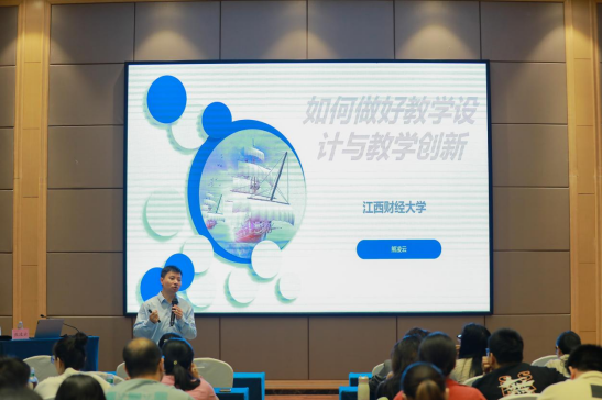 熊凌云以《教师如何做好课堂教学设计与教学创新》为主题,围绕如何做好课堂教学设计和如何教学创新两个方面展开。他结合自身深厚的教育理论功底和丰富的教学经验及参赛经历,向新教师传授了教学创新大赛需提交的材料、创新成果报告评分标准等方法和经验。他通过现场互动的形式,提问先有“教学问题 or 教学目标?”引出教学目标的提出是以课堂教学真实问题为导向,并从课堂教学的若干痛点问题出发,结合实际案例讲授了如何做好课堂教学设计以及教学创新路径。