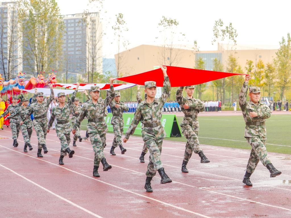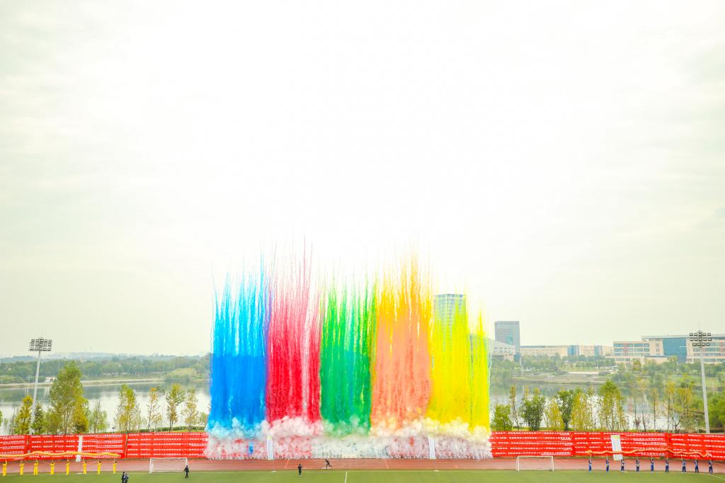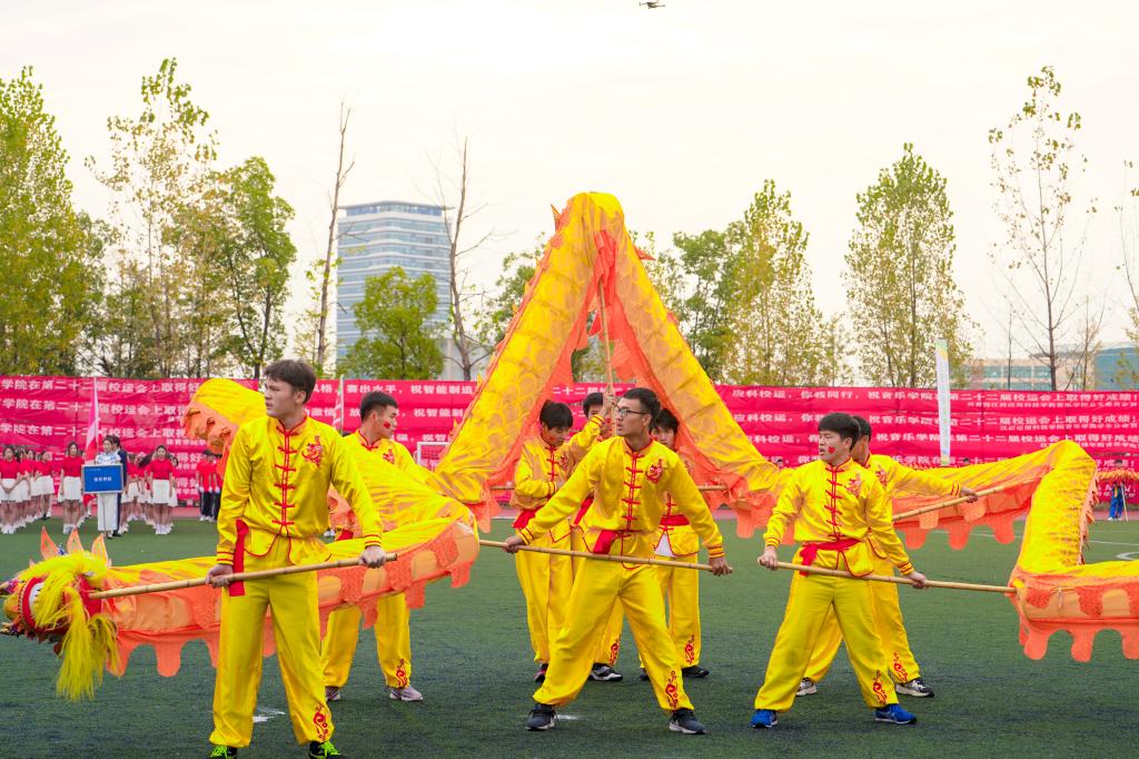 音乐学院用激情和信念为校运会带来美妙的旋律,美声合唱的《人民江山》为赛场注入浓浓爱国情;为庆祝搭载神舟十七号载人飞船的长征二号F遥十七运载火箭在酒泉卫星发射中心成功点火发射,智能制造工程学院学生们践行劳模精神、工匠精神,自制航天模型现场升空;现代管理学院的同学们结合自身专业特色融合中国古典舞蹈,献上太极与现代舞蹈《夜泊秦淮》;光华宝石与艺术设计学院现代与古典对比强烈的表演,时尚前卫;传统文化川剧变脸、机器人装甲、舞龙表演、现场风华正茂少年郎、仿生六足机器人舞蹈表演、健美操和体育舞蹈等节目活力四射、热情洋溢,为赛场增添了无限魅力。同学们在团结协作中充分展现出应科学子朝气蓬勃的精神面貌、团结上进的优秀品质。现场回荡着师生阵阵喝彩和经久不息的掌声。