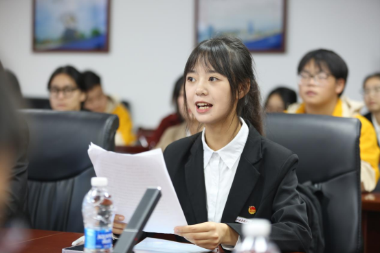 学生骨干代表国际商务学院2021级商务英语专业胡昀腾同学分享了他疫情期间的相关志愿者活动。他说到,作为一名应科人,应当牢记“请党放心,强国有我”的铮铮誓言,在应对重大风险挑战中展现青春风貌,在强国建设民族复兴接力赛中贡献青春力量,努力做有理想敢担当能吃苦肯奋斗的新时代好青年,让青春在全面建设社会主义现代化国家江西新篇章中绽放绚丽之花。