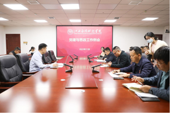 11月16日上午,学校在综合楼六楼会议室召开党建与思政工作例会。校党委委员、纪委书记江星主持会议,党群工作部门负责人,基层党总支 (直属党支部 ) 书记及专(兼) 职组织员参加会议。