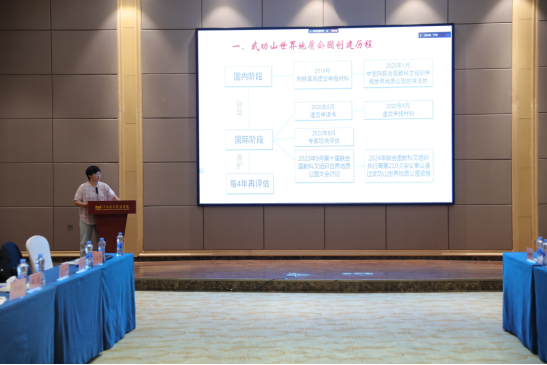 会上,黄玉林代表学校向远道而来的各位领导、专家,以及视频参与本次研讨会的各地质科普单位表示热烈的欢迎和衷心的感谢!他表示,学校高度重视博物馆建设,斥巨资在美丽的梅岭山麓,秀美的幸福水库岸边打造世界一流的自然遗产博物馆。学校博物馆的建设不仅提升自然科学研究水平,还为广大师生了解地球知识、欣赏自然之美、倡导保护自然资源提供了世界级的科普场馆。