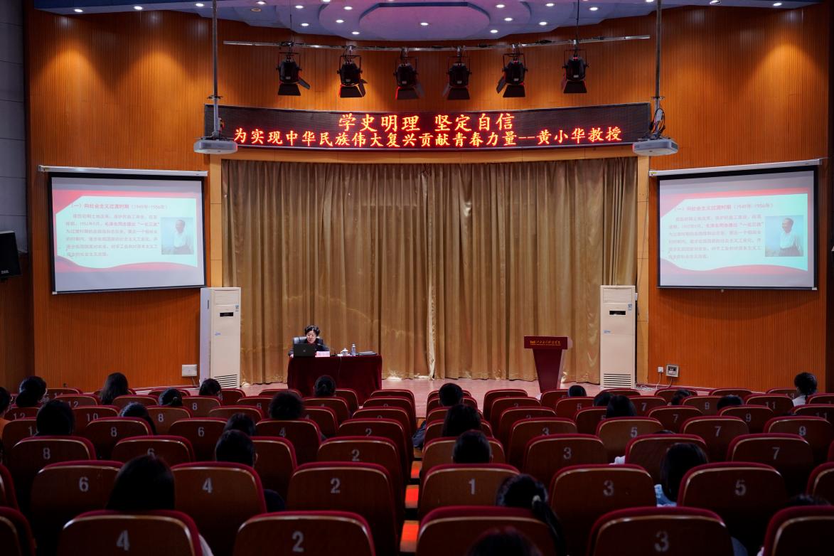 讲座中,黄小华教授紧紧围绕“坚定中国特色社会主义制度自信”这一主题,从“中国特色革命道路的艰辛历程”“中国社会主义制度的探索与确立”“中国特色社会主义制度的完善和发展”“中国特色社会主义制度的优势”以及“坚定中国特色社会主义制度自信”这五个方面,为我校师生作了一场十分精彩的讲座报告。