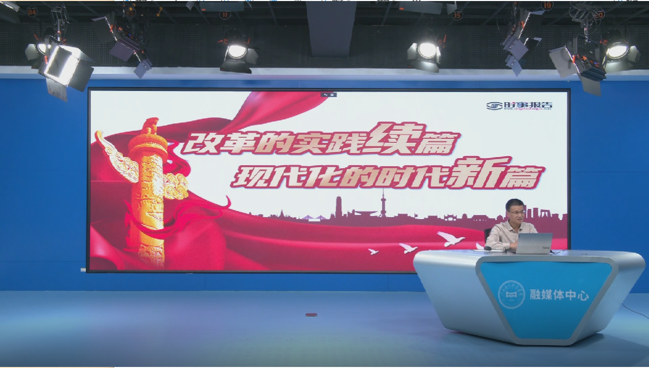 10月22日下午,党委书记贺一松在融媒体中心为我校第十六期“青马工程”大学生骨干培训班学生上了一堂题为《改革的实践续章 现代化的时代新篇》的精彩思政课。