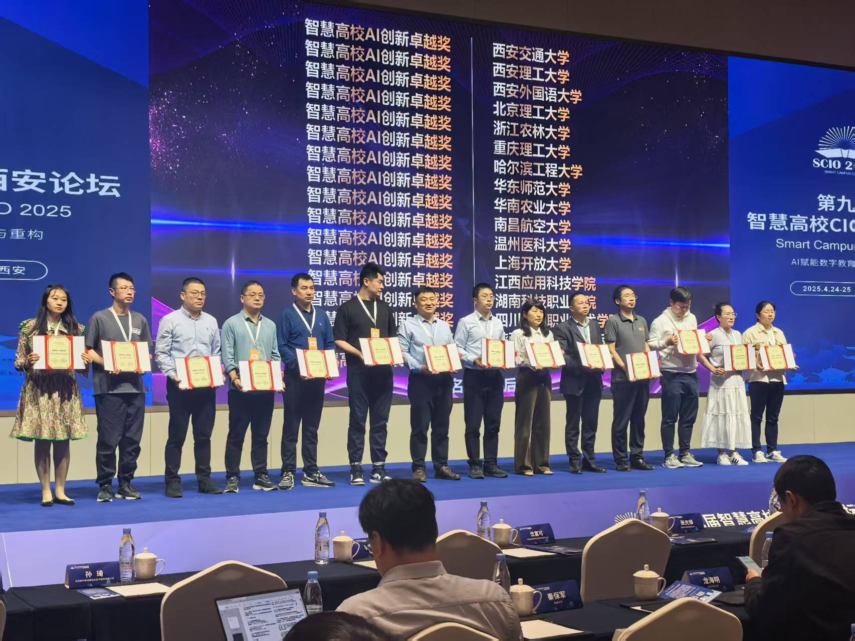 近日,由智慧高校CIO信息化专业委员会与eMOOC联盟联合主办的第九届智慧高校西安论坛上,学校荣获“智慧高校AI创新卓越奖”。本届论坛以“AI赋能数字教育创新与重构”为主题,吸引全国150余所高校和企业的400余名专家学者参会,围绕人工智能、大模型、教育数字化转型等前沿议题深入交流,共促教育高质量发展。