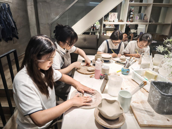 在中国犀牛工作室,主理人徐宁以“稀有即珍贵”为创作理念,展示了他对陶瓷工艺的极致追求。从泥料配比到釉色调制,从器型设计到火候掌控,每一道环节都承载着对传统技艺的深耕与当代语境的回应。他说:“真正的好作品,是可以沉默地说话。”青年学生在他的讲述中感受到一种超越技艺的文化信念,也在思想的共鸣中明白,文化自信并非遥远的理论,而是源于对传统的深度理解与创造性转化。