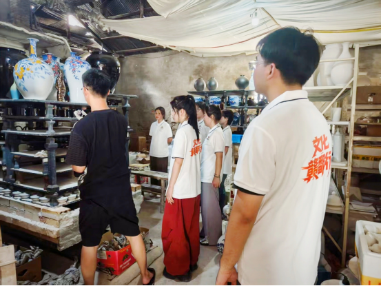 在景德镇古窑遗址与陶瓷作坊之间,分队成员围绕瓷器的釉色变化、成型工艺和烧制规律,展开了有针对性的实地调研。实践中,学生对同一器型在不同温差下呈现出的细微色差进行了记录与分析,并与师傅探讨柴火与气窑烧制效果的异同,逐渐意识到陶瓷技艺并非纯粹经验的积累,而是一套蕴含自然认知、审美判断和技术智慧的系统工程。
