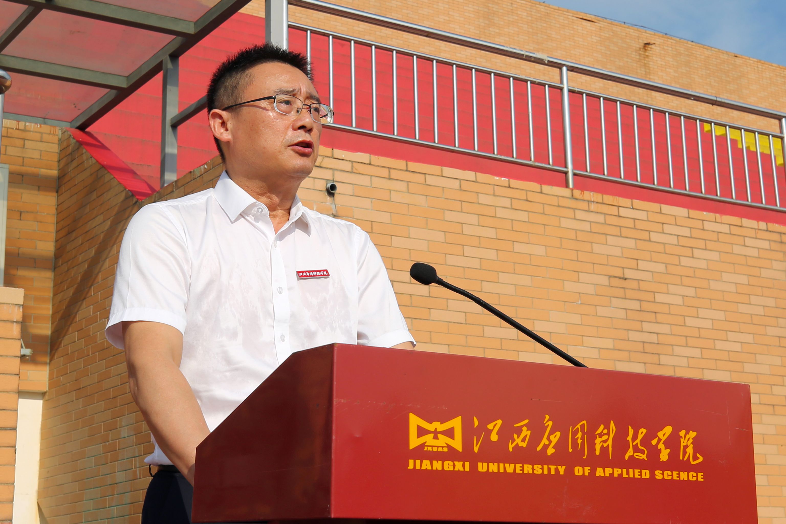 副校长张敏代表学校向军训旅授旗,并作军训动员讲话。他指出,军事技能训练不仅是大学生涯的必修课和国家国防建设的基础要求,更是学校落实立德树人根本任务、培养担当民族复兴大任时代新人的关键举措。他强调,军训不仅是赓续红色基因、厚植家国情怀的“初心课”,更是锤炼意志、塑造品格的“成长课”,同时还是融入集体、开启大学生活的“启航课”,具有多重育人功能。他希望全体带训教官和参训学生要淬炼意志,端正态度迎挑战;要严守纪律,团结协作铸集体;要科学训练,安全为本保成效。他勉励全体新生以抗战精神为帆,以江西红土为舵,在训练中铸就坚韧之魂、厚植报国之志,用青春汗水践行“近知、近仁、近勇”的校训,交出“政治合格、作风优良、纪律严明”的优秀答卷。