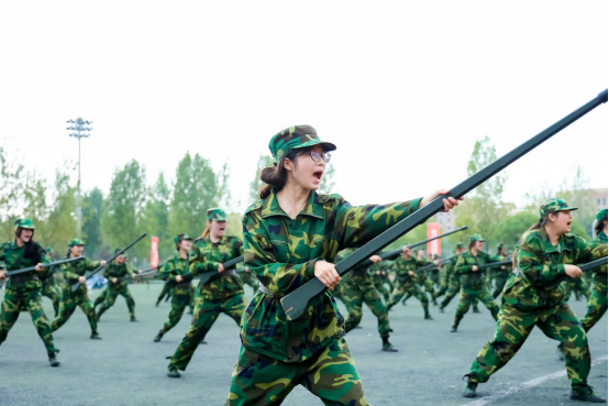 在军训汇报表演中,全体参训学生组成的27个连队进行了分列式表演,展示了刺杀操、匕首操、战术、军体拳等训练科目,充分彰显了我校学子积极昂扬的精神风貌。