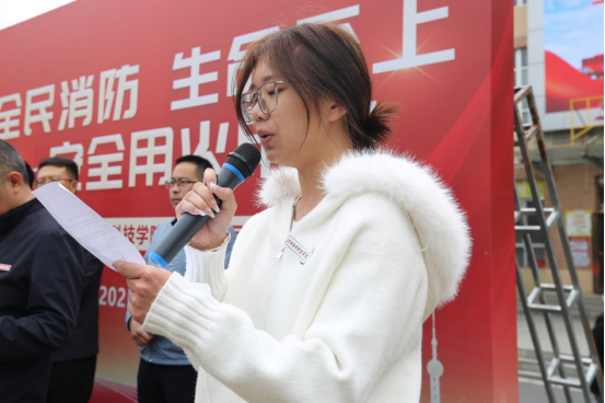 活动现场,保卫处相关负责人详细介绍了本次消防安全宣传月的整体安排与系列活动。工作人员还现场讲解并演示了灭火器的规范操作要领,通过“一提、二拔、三握、四压”的实操步骤,指导师生掌握初期火灾的应对技能,有效强化了应急实战能力。经济管理学院学生代表涂黎雯向全体同学发出消防安全倡议,号召大家从自身做起,自觉遵守校园消防管理规定,学习应急知识,共同为建设平安校园贡献力量。