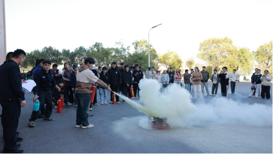 疏散结束后,璜溪消防中队队员随即为师生带来一场消防安全专题培训。他们系统讲解了气瓶安全存储规范,并现场演示了灭火器、灭火毯、防烟面具等核心消防器材的正确使用方法,使抽象的安全知识变得直观可感。