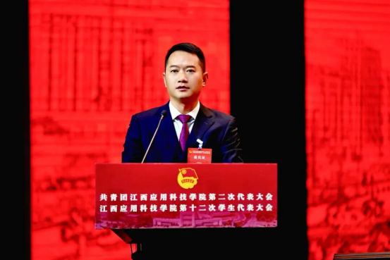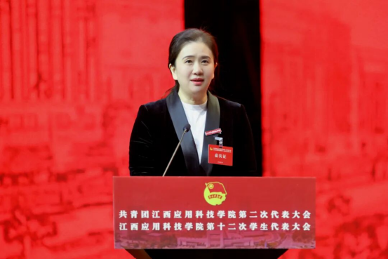 肖如恩代表团江西省委向大会的召开表示热烈祝贺,向学校广大团员青年致以诚挚的问候,并充分肯定了自上一次团学代会以来学校团学工作取得的成绩。他指出,当前正值全国上下深入学习贯彻党的二十届四中全会精神、全团认真落实团十九届四中全会部署的重要时期,也是学校锚定建设“国内先进、省内一流、有特色、高水平应用型民办本科高校”目标奋力前行的重要阶段。学校团学组织要聚焦为党育人的主责主业,坚持以习近平新时代中国特色社会主义思想武装青年,依托江西红色沃土与学校“红宝石”党建品牌,将红色基因深植青年心中,牢牢把稳政治方向。要聚焦服务全省发展大局,引领团员青年在科技创新、乡村振兴、社会服务等领域挺膺担当,将个人理想融入时代洪流。要聚焦青年成长成才需求,紧扣服务青年工作生命线,用心用情筑牢青年信赖的坚强堡垒。要聚焦团学组织自身建设,持续深化改革,不断增强引领力、组织力、服务力,推动新时代高校共青团工作高质量发展。他鼓励各级团学组织以新气魄、新作风把握机遇、开拓进取,为服务广大青年学生成长成才,推动江西应用科技学院各项事业高质量发展做出新的更大贡献。