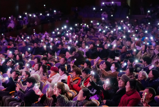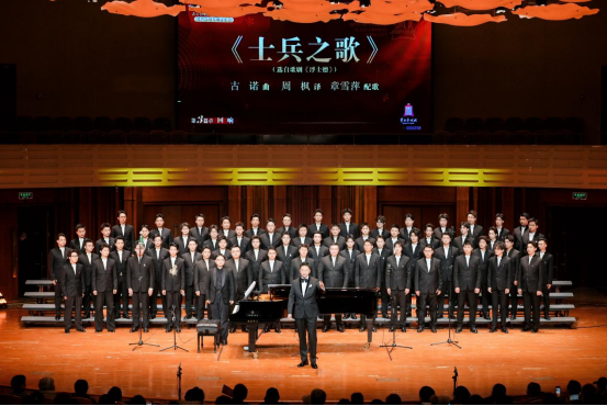 在“画卷”篇章中,《美丽的夏牧场》引领观众走入辽阔而诗意的音乐图景,《南泥湾》《呼伦贝尔大草原》等作品深情讴歌祖国山河,《我像雪花天上来》旋律悠扬、情感真挚,男女声三重唱《相伴一生》以声部交织再现革命岁月中的深厚情感。“咏叹”篇章侧重情感与历史的艺术表达,《该有多好》《渔阳鼙鼓动地来》《爱永在》等作品层层递进,古曲新编《满江红》激荡出深沉的家国情怀,男高音独唱《多么快乐的一天》以稳定而富有感染力的演唱将现场气氛推向高潮。“回响”篇章中,《士兵之歌》《等你到天明》《传奇》《伏尔加船夫曲》等作品依次呈现,合唱音色厚重而富有张力,展现出多元文化背景下的精神力量。音乐会在全体演员与观众齐声高唱《歌唱祖国》中圆满落幕。