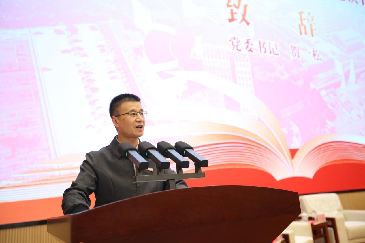校党委书记贺一松在致辞中指出,本次活动既是一场书香浸润校园的阅读活动,更是一堂启智润心、培根铸魂的思想教育课。《习近平与大学生朋友们》第一、二卷生动记录了习近平总书记与青年学生交流交往的真实故事与深情寄语,是广大青年触摸思想温度、汲取奋进力量的鲜活教材。他勉励同学们在阅读中读懂时代、读懂责任,将“读万卷书”与“行万里路”紧密结合,在实践中校准成长方向,把书中的思想启迪转化为成长动力。贺一松书记还介绍了学校以“红宝石”党建品牌为引领,推动阅读育人、文化育人、实践育人同向发力的育人路径,希望同学们以此次活动为契机,静下心来读原著、悟原理,努力成长为堪当民族复兴重任的时代新人。