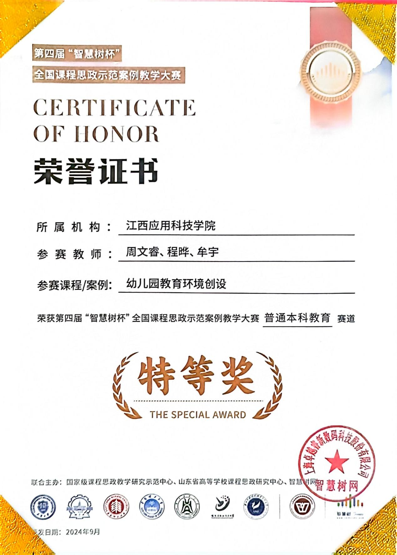 近日,第四届“智慧树杯”全国课程思政示范案例教学大赛成绩揭晓。大赛历时5个月,经过初赛、复赛两轮专家网评,学院《幼儿园教育环境创设》课程教师团队获本科赛道特等奖,《小学班队原理与实践》《中外教育史》《家庭教育学》等3个课程教师团队获本科赛道二等奖,这是学院近年积极开展课程思政建设,努力打造课程思政示范课取得的又一成果。