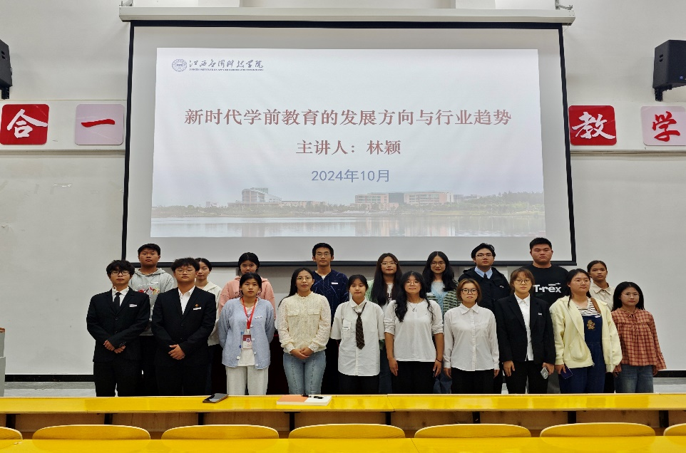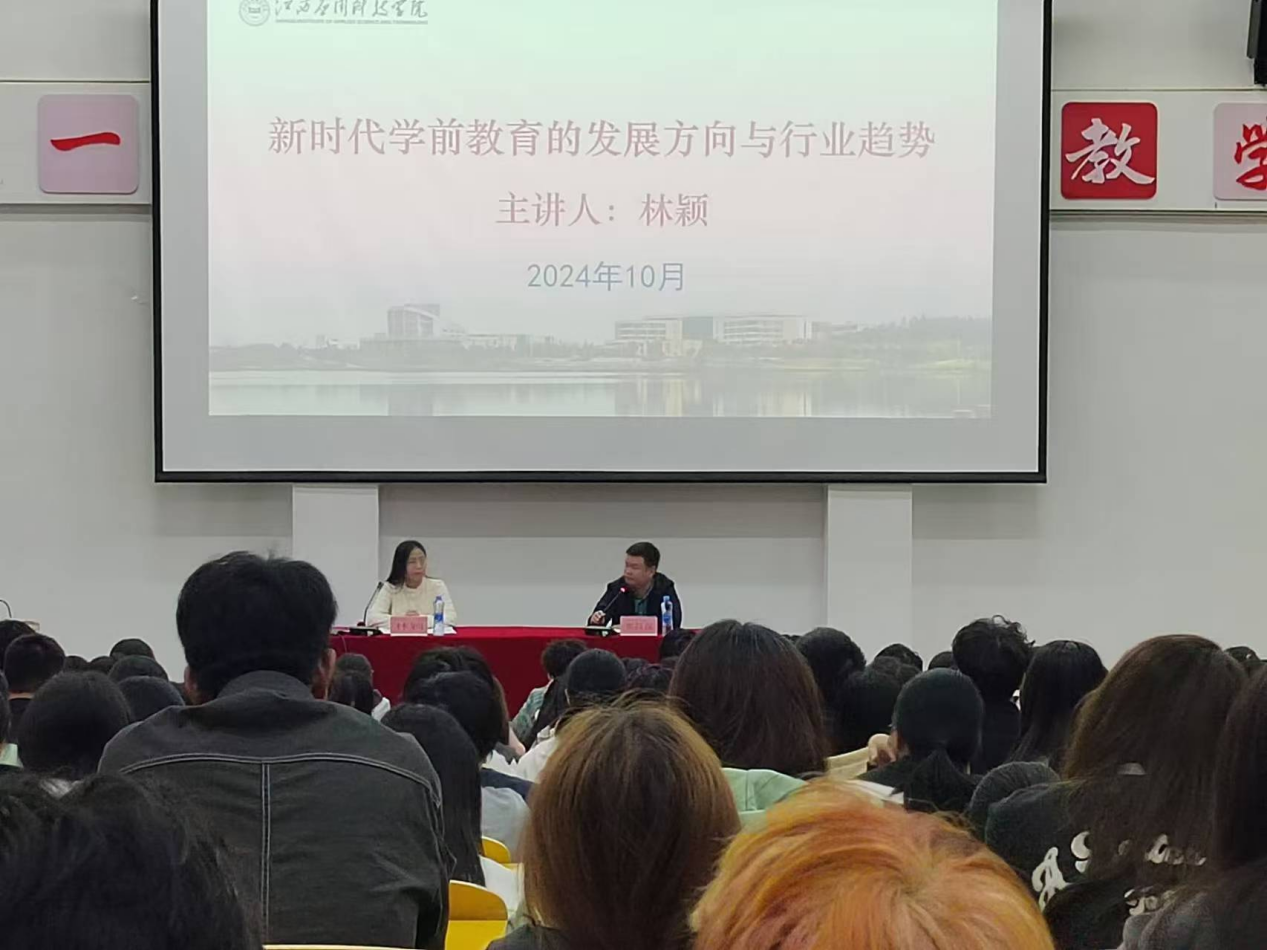 为了帮助2024级学前教育专业学生更好地理解新时代背景下学前教育的现实挑战与未来趋势,坚定他们选择学前教育专业的信念,并激发他们成为优秀幼儿教师的职业追求。10月21日,学院在志远楼101报告厅举办了“新时代学前教育的发展方向与行业趋势”为主题的专题讲座,讲座由学前教育教研室林颖老师主讲,郑昌保院长主持讲座。