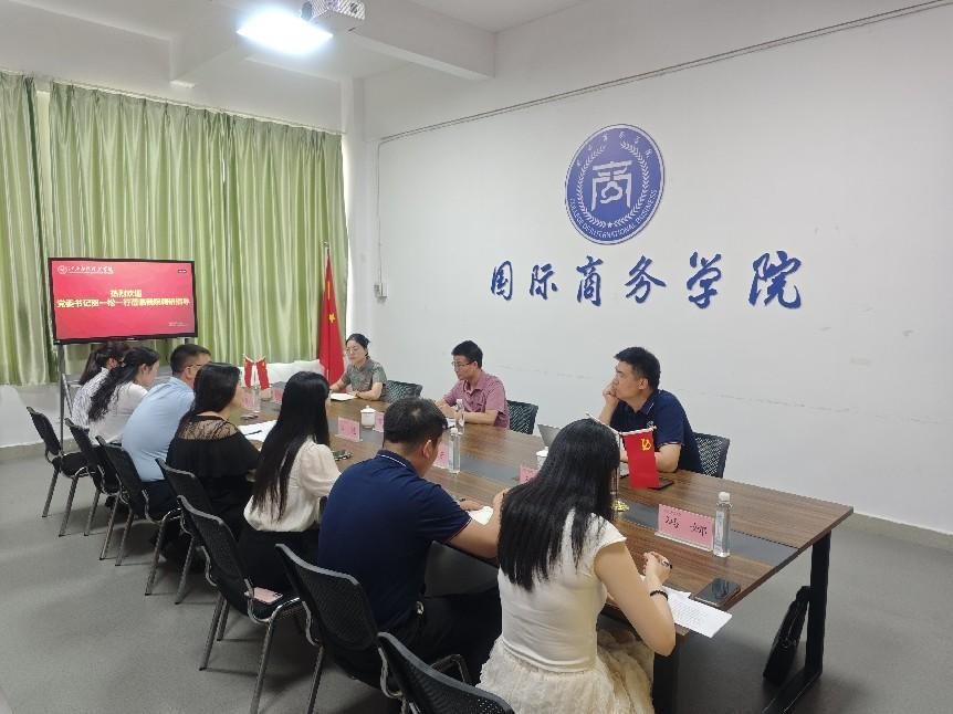 贺一松书记认真听取了学院汇报,对学院党团建设、发展方向、专业建设、人才培养进行了解并对学院的工作表示了充分肯定。贺一松书记表示,商学院是充满活力的、专业建设清晰、目标明确的学院,他指出要继续保持专业建设,加强党建引领工作期待商学院后续工作能更上一层楼。