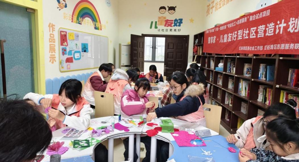 为弘扬志愿服务精神,引导青年学子在实践中涵养品格、传递温暖,商学院25本电子商务2班团支部于2026年3月8日走进红谷滩区世纪中央城社区,开展“温暖敲门”社区探访志愿活动。本次活动以“陪伴成长、聆听岁月”为主线,通过手工协作与温情探访相结合的形式,让青年学子在与小朋友和社区长辈的互动中,收获成长与感动。