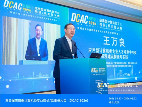 2026年3月20日至22日,由全国高等学校计算机教育研究会主办的第四届应用型计算机类专业院长/系主任大会(DCAC2026)在湖北武汉举办,未来技术学院选派胡珺、接辉、魏子腾、江浪共4名专业主任、副主任和骨干教师参会。
