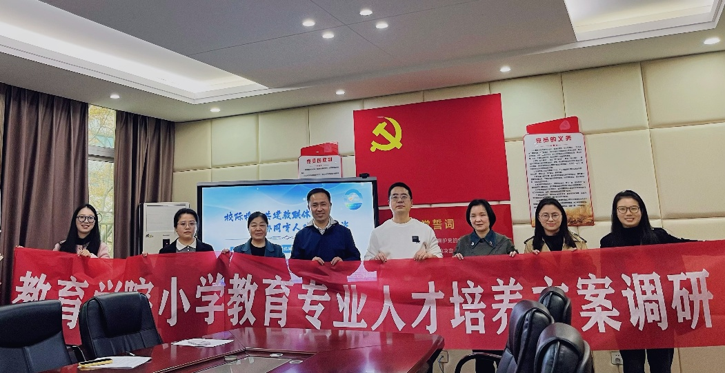 为扎实推进2026版小学教育专业人才培养方案修订工作,精准对接基础教育行业发展需求与小学教师岗位能力要求,2026年3月30日下午,教育学院小学教育教研室主任路萍带队赴校企合作实践基地北湖小学,开展人才培养方案修订专题调研。北湖小学校长徐耀志携学校一线骨干教师代表参与调研座谈。