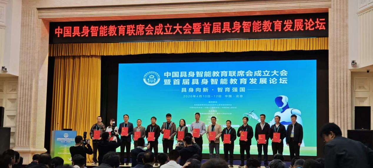 2026年4月10日至12日,中国具身智能教育联席会成立大会暨首届具身智能教育发展论坛在北京西郊宾馆隆重举行。江西应用科技学院未来技术学院副院长彭军、人工智能教研室主任耿仁亮受邀参加此次盛会。大会宣布成立中国具身智能教育联席会,我院成功入选首批“会员单位”并获授牌。