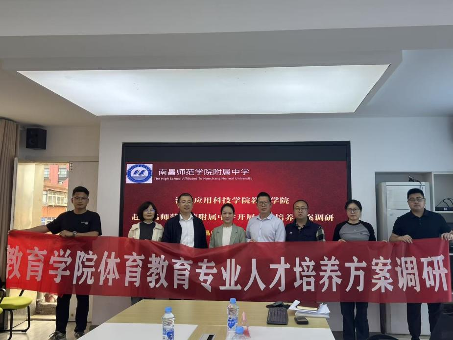 为扎实推进2026版体育教育专业人才培养方案修订工作,精准对接中学教育发展需求与中学教师岗位能力要求,2026年4月7日,教育学院院长罗明丽、副院长沈友华、教研室主任夏花等一行5人,赴南昌师范学院附属中学开展人才培养方案修订专题调研。南昌师范学院附属中学校长黄子君、副校长宋扬及一线体育骨干教师代表参加座谈交流。