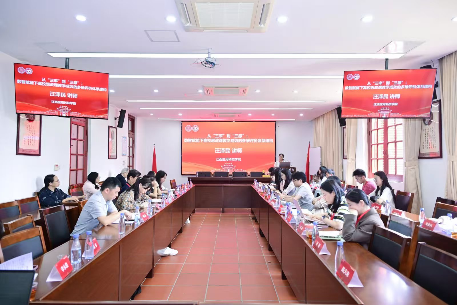 论坛上,汪泽民副院长作了题为《从“三率”到“三感”:数智赋能下高校思政课教学成效的多维评价体系建构》的发言。她指出,长期以来,高校思政课教学评价过度依赖“到课率、抬头率、点头率”这“三率”指标,存在难以触及价值塑造核心等问题。为此,提出在数智技术赋能背景下,推动评价重心从“三率”向“获得感、认同感、使命感”跃迁,构建兼具价值高度、心理深度与技术可行性的多维评价体系。