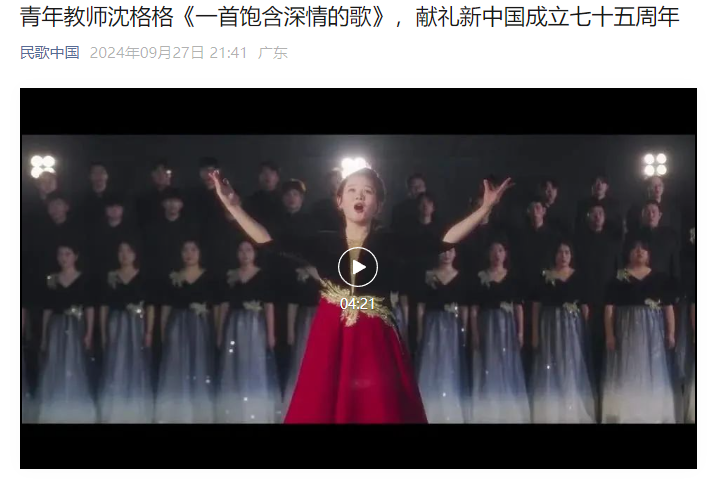 在中华人民共和国即将迎来75周年华诞之际,江西应用科技学院青年教师沈格格倾情演唱《一首饱含深情的歌》,献礼亲爱的祖国、伟大的祖国、光荣的祖国。该作品由江西应用科技学院艺术团监制,江西省文化和旅游研究推广协会出品,江西省文化和旅游研究推广协会会长朱虹作词,作曲家舒一夫谱曲,旨在向祖国献上最真挚的祝福。 歌词分为四个段落,亲爱的祖国,是儿女与祖国母亲割舍不断的血脉联系。伟大的祖国,是日出东方的万丈光芒。光荣的祖国,是万千儿女的英勇奋斗。最后总结是希望复兴之光辉映万家灯火。歌曲抒情悠扬,气势磅礴,表达了对祖国的赤城热爱,是一首献给祖国的赞歌,是对中华民族伟大复兴的深情呼唤。